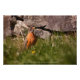 Ein Foto eines Rotkehlchens, das beim Gehen im Gras einen Blick hat. Hinter ihm steckt eine Steinmauer. Image Copyright ©2021 Kimberly J Tilley.