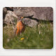 Ein Foto eines Rotkehlchens, das beim Gehen im Gras einen Blick hat. Hinter ihm steckt eine Steinmauer. Image Copyright ©2021 Kimberly J Tilley.