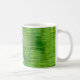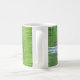 Un Widgeon américain mâle et femelle nage, réfléchi, dans de l'eau verte à l'avant et aux côtés de cette tasse en céramique de 11 onces. Un cadeau parfait pour les amateurs d'oiseaux ou les chasseurs.