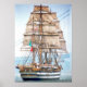 Das ist ein Marineschiff für Italien, obwohl sie als altes Schiff der Linie bemalt ist. Sie geht auf die Varrenzano-Brücke in New York. Ein Originalfoto von Operation Sail 2000.