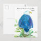 Eine Postkarte mit einem stilisierten Glatzadler mit lebhaften königsblauen Federn, die auf einer immergrünen Hand mit Tinte und Aquarell gekrönt sind. Dieser Tag ehrt unser nationales Symbol, daran zu denken, sie und ihren Lebensraum zu schützen.
