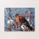 Robin, der etwas Frucht von einem crabapple Baum im Spätwinter genießt