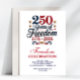 Erstellen Sie Ihre eigene Einladung zur 250-Jahr-Feier Amerikas! Personalisieren Sie dieses Design mit Ihrem eigenen Text. Sie können dieses Design weiter anpassen, indem Sie optional die Schaltfläche "Details bearbeiten" auswählen.