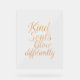 Un design typographique élégant et chaleureux présentant la citation inspirante "Âmes Belles Brillent Différemment". Le texte utilise une belle police script avec un effet de feuille de rose gold/cuivre scintillant et des reflets subtils, sur un fond gris clair calme. Parfait pour promouvoir l'amour de soi, la positivité et célébrer la beauté intérieure.