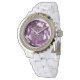 Weiblicher Kristall-Emaille mit einem Bild eines blendenden Amethysts. Siehe dazu passende Taste, Charme, Ohrringe, Schlüsselanhänger und Halskette. Sehen Sie sich die gesamte Gemstones & Medallions Watch-Sammlung im ACCESSORIES-Bereich an.