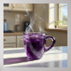 Kunstwerk einer Tasse aus Amethystkristall. Ein faszinierendes Bild, das den stillen Luxus eines sonnigen Augenblicks feiert. Dieses exquisite Stück besticht durch eine facettierte amethystische Tasse, die mit einem warmen, dampfenden Getränk gefüllt ist und das Morgenlicht mit strahlender Brillanz einnimmt. Der weiche Dampf, der aus der Tasse steigt, verleiht dem Teller eine Touch Charme, während die knackigen Highlights und die tiefen Schatten auf der Gegenübertür ein Gefühl von Realismus schaffen. Im Hintergrund ist eine gemütliche Küche mit natürlichem Licht, die ein Gefühl der Ruhe und Wärme einlädt. Dieses Kunstwerk ist eine perfekte Ergänzung für alle, die Kunst schätzen, die den Alltag eines ruhigen Morgens erahnen lässt, um jedem Zimmer eine Touch von Ehrfurcht und Schönheit hinzuzufügen. Diese Kunst kann angepasst, gedruckt und heruntergeladen werden.