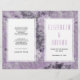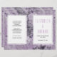 Impressionnez vos invités avec cette cérémonie de mariage en marbre moderne et le design du programme de la fête. Il présente une image de marbre mauve améthyste et un cadre blanc avec votre texte.
