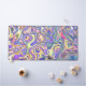 Des bandes de fleurs d'améthyste violet, lavande, crème et bleus créent ici un design artistique abstrait de style amibe.