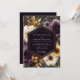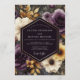 Embrace a dramatic and opulent aesthetic with this stunning floral design. Deep amethyst purple and rich ochre blooms are artfully composed against a dark, moody backdrop. Luminous ivory anemones provide a beautiful contrast, creating a sophisticated and romantic atmosphere perfect for a baroque or autumn-themed union.