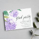 Elegante, blumengeschmückte Einladungen für stilvolle Abschluss mit Aquarellbäumen im lila Pastelllavender, mit üppiger Vegetation. Passen Sie die Details Ihrer Graduiertenparty auf der rechten Seite an und verzieren Sie sie mit schicken Kalligrafien. Die Einladungen kehren zu massiv blass federgrün.