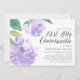 Chic première invitation à la communion sainte pour votre petite fille présente des illustrations de fleurs de pivoine aquarelle dans le violet pastel élégant, accentué de feuilles vert luxuriant. Personnalisez votre cérémonie de communion et les détails de la célébration alignés à droite. Cartes inversées à solide vert menthe pâle.