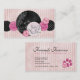 Jazz up your pet sitting business, salon de toilettage, service de formation pour animaux, ou toute autre profession liée aux animaux avec ces cartes de visite roses et noirs de Kustom By kris. Sur le devant, un dessin d'un chat et d'un chien, empreintes de pattes, rayures, fleuris et pois. Personnalisez le dos avec votre nom d'entreprise et vos coordonnées, ou omettez le texte et ajoutez votre propre logo.