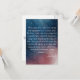 Cette carte de voeux a une police sans empreinte nette avec des lettres blanches affichant le verset de la Bible "Amos 2:4 KJV" sur une image arrière - plan affichant un thème d'espace profond avec plusieurs étoiles dans un ciel de couleur foncée avec aurora borealis lumières créant un look et un style double couleur. Ce verset fait référence au 2e chapitre du Livre d'Amos montrant le 4e verset de cette Bible, citant le thème de la Bible du Roi Jacques avec les mots "Avec Dieu tu peux !" sur le dos. Fabriqué avec une impression couleur pleine qualité sur un papier mat de 3,5 po x 5 po (portrait) ou de 5 po x 3,5 po (paysage) fabriqué et imprimé aux États-Unis.