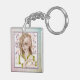 Un elfe mâle mignon aux cheveux longs rasés sur les côtés, yeux bleus et un grand sourire. Ses longues oreilles pointues sont décorées d'une seule boucle d'oreille argentée. Il porte une tunique crème avec une garniture verte et a ses mains en forme de coeur. Il est entouré de fleurs blanches et roses aux feuilles violets. Laisse-le t'aider à envoyer ton amour.