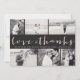 Modern Love and Thanks Classic Calligraphy Script Et 6 Photo Collage Mariage Carte de remerciements. Ce modèle de carte de remerciements moderne et élégant, noir et blanc multi-5 photo mariage, présente un script de police de calligraphie blanc élégant dans un design typographique classique sur une bande simple. Vous pouvez facilement le personnaliser avec vos photos mariages préférées. Vous pouvez également personnaliser votre message de remerciement personnel unique au dos de chaque carte. Conçu par fat*fa*tin. Facile à customiser avec votre propre texte, photo ou image. Pour des demandes personnalisées, veuillez contacter fat*fa*tin directement. Des frais personnalisés s'appliquent. www.zazzle.com/fat_fa_tin www.zazzle.com/color_therapy www.zazzle.com/fatfatin_blue_knot www.zazzle.com/fatfatin_red_knot www.zazzle.com/fatfatin_mini_me www.zazzle.com/fatfatin_box www.zazzle.com/fatfatin_design www.zazzle.com/fatfatin_ink