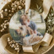 Chérissez les merveilleux souvenirs pour toujours avec nos ornements de noël de marionnettes personnalisés. Notre design présente une belle conception festive et magique avec un grand espace réservé aux photos pour vous permettre de personnaliser avec la photo de votre animal de compagnie. Un motif étoile en faux or est placé le long du haut et du bas de la photo d'animal de compagnie. "Amour" est affiché en faux or avec un mignon empreinte de patte de chien faux or placé dans la lettre "O". Personnalisez avec le nom de votre animal de compagnie. Oeuvre de Moodthology Papery.