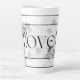 Mug en latte 'Love' dans un design floral noir et blanc.