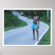 Frau auf einer kurvenreichen Straße im Karibischen Raum