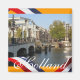 Hollandais Amsterdam Holland "Magere Brug" ("Pont Skinny") à travers la rivière Amstel et les maisons du canal hollandais lors d'une belle journée chaude d'été et rouge, blanc, bleu avec le texte "Holland" agitant un aimant de réfrigérateur orange. Entièrement personnalisable ! Ajoutez votre propre texte et images si vous voulez! Oranje Koelkastmagneet Holland. Commandez dès maintenant votre propre réfrigérateur Holland personnel ou votre aimant Office facilement en ligne à l'adresse www.zazzle.com/hollandshop!