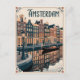 Entdecken Sie den Charme Amsterdams mit dieser Vintag minimalistischen Postkarte. Das Design besticht durch seine symbolträchtigen Elemente wie die malerischen Kanäle der Stadt, geschichtsträchtige Häuser und klassische Fahrräder. Freuen Sie sich auf saubere Linien und subtile Farbtöne, die eine zeitlose Eleganz hervorrufen. Perfekt für Sammler, Reisende und Fans von Amsterdams einzigartiger Attraktion.