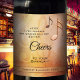 Un étiquette de vin avec un design rose or et or stylisé avec des notes musicales et vos propres textes (drôles). Idéal pour une fête d'anniversaire ou tout autre événement festif.