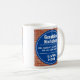 Amusant style Commémoratif Plaque murale Cadeau sous forme de tasse de café. Plaque bleue et blanche sur un mur en brique. Modifiez la conception pour modifier le libellé en fonction du destinataire du cadeau. Le design est de part et d'autre.