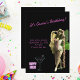 Fun & funky invitation pour adultes propose cocktail néon et "happy hour" avec danseuse costumée papillon vintage et texte rose personnalisable sur arrière - plan noir.
