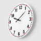 Eine schöne, einfache analoge Uhr, attraktive, fette Zahlen mit den Minuten, die mit schwarzen Flecken markiert sind, und die Stunden in etwas größeren roten Flecken.