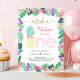 Diese bezaubernde Einladung zeigt handgemalte tropische Aquarellblumen mit Imitaten goldenen Glitzer Konfetti.