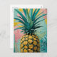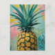 Dieses lebendige und strukturierte Kunstwerk zeichnet sich durch eine nahe, stilisierte Darstellung einer Ananas aus. Die zarte, goldgelbe Haut der Frucht wird mit kühnen, ausdrucksstarken Strichen ausgeschmückt, während sich die aquamarinen, spitzen Blätter in kronenähnlicher Form ausbreiten. Der Hintergrund ist ein abstrakter Wandteppich aus weichen Pinseln, Gelbtönen und Teppichen, bemalt mit einer bürstlich-impressionistischen Textur, die sich wunderbar mit der definierten Form der Ananas kontrastiert. Das Stück verbindet ein Gefühl von natürlichem Realismus mit einem lebendigen, abstrakten Hintergrund und schafft eine visuell dynamische und einnehmende Komposition.