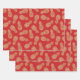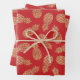 Ananas, Gold, auf roten Papierblättern Geschenkpapier Set