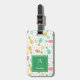 Farbenfrohe Gepäckmarke mit einem Muster aus Ananas, Ananas-Scheiben und Ananas-Stückchen in Korallenrosa, Türkis und Gelb vor weißem Hintergrund. Auf dem Ananas-Muster gibt es ein grünes Etikett, auf dem man seinen ursprünglichen Namen hinzufügen kann. Der Rücken hat ein grün-weiß gestreiftes Muster. Niedliches personalisiertes Gepäckstück, ideal für tropische Ferien und Sommerferien.