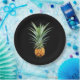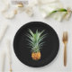 Ananas mit großen Haaren auf schwarzem Hintergrund Pappteller
