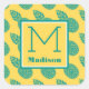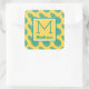Ananas-Muster | Monogramm Quadratischer Aufkleber