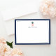 Unsere eleganten personalisierten Schreibwaren-Flachkarten verfügen über einen marineblau gestrichenen Rand, eine grüne und rosa Abbildung der tropischen Ananas und Ihren Namen, Ihr Monogramm oder Ihre Personalisierungswahl. Die Karten kehren zu breiten, blau-weißen Streifen zurück, um einen prächtigen Chic-Look zu erhalten.