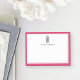 Preppy-Chic-Noten verfügen über eine kleine Vintage Ananas-Illustration mit Ihrem Namen oder Monogramm in klassischem Marineblau, gerahmt durch eine Grenze von kontrastierendem vibrierendem Fuchsia-Rosa für einen ausgeklügelten, aber leichteren Look.