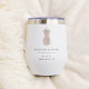 Ces élégantes tondeuses à vin minimalistes font de grands cadeaux de fête nuptiale ou des faveurs de mariage de destination pour votre mariage d'été ou tropical. Nettoyez le design minimal avec vos noms, date mariage et emplacement dans les lettres noires classiques. Une illustration d'ananas en beige de sable neutre complète le design.