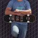Anarchie Sk8 oder die! mit Infrarotbild des grimmigen Sensenmann- und Anarchiesymbols im Hintergrund. Wörter werden in Knochen geschrieben. - Entwerfen Sie Copyright (c) 2010 durch blaue Schirmherrschafts-Software und alles Marketing, berichtigt reserviertes.