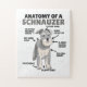 Die Anatomie eines Schnauzers. Der Welpe ist ein niedlicher Hund für alle, die den Hund züchten Lieben. Die Anatomie des Hundes erklärt lustig, welche Stellen auf dem Hund was tun können. Hunde sind niedliche Welpen