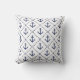 Das Kopfkissen wird in der Farbe Marine und Weiß mit Ankerprint angezeigt. Die Rückseite ist marineblau. Passen Sie dieses Objekt an oder kaufen Sie, wie es ist.