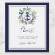 Rustikales Hochzeitsdesign am Strand, das nautische Elemente (Marinebanker, Knoten, Seestern) mit einem einzigartigen und originellen Aquarellkranz eukalyptus-Blätter und Grünpflanzen kombiniert. Die Monogramme von Bride und Groom. Navy-Schrift. Ideal für Hochzeiten am Strand, Hochzeiten im Wassersport, Hochzeit in Urlaubsort, Hochzeiten im Sommer, Hochzeiten im rustikalen Stil.