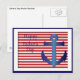 Ein blauer Anker auf rot-weißen Streifen mit Happy Vatertag.