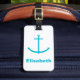 Gefallen dir nautische Gepäckanhänger? Dieses Gepäckanhänger hat einen türkisblauen Anker und Text, den Sie personalisieren können.