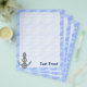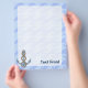 Anchor with rope illustration over waves light blue seamless background. Custom Text.