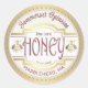 Design étiquette à l'ancienne flanqué d'abeilles dorées stylisées. Bordure or. Personnalisez-vous avec votre nom d'entreprise primaire en haut et ajoutez votre emplacement et le poids du filet miel en bas.