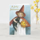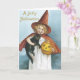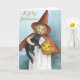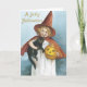 Les cartes d'Halloween de mode ancienne raviront tout le monde. Parfait pour donner à tous ceux qui figurent sur votre liste. Faites de cette année spéciale avec des cartes de voeux uniques. Salutations d'Halloween. Adorable petite fille habillée d'une coutume de sorcière tenant un chat et un citrouille noirs.