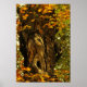 Dieses Foto-Poster zeigt einen alten, braunen und schwarzen Ahornbaum, umgeben von brillantem Herbstblättern in Gelb, Rot, Orange und Grün. Die alten Knoten und die Rinde bilden ein interessantes abstraktes Muster.