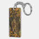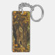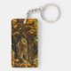 Dieser Schlüsselanhänger der Kunstfotografie zeigt einen uralten, braunen und schwarzen Ahornbaum, umgeben von brillanten Herbstblättern in Gelb, Rot, Orange und Grün. Die alten Knoten und die Rinde bilden ein interessantes abstraktes Muster.