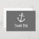 Ancre nautique Merci Cartes de notes (Dark Grey / Silver / White)...Ces cartes de remerciement nautiques amusantes sont la façon parfaite de dire merci à vos amis et votre famille qui ont assisté à votre mariage de destination nautique. Parfait pour la mariée et le marié qui ont leur réception de mariage sur un bateau ou un yacht. Le design comporte une ancre de navire amusante. Voir WindyCityStationery.com pour notre gamme complète de cartes pour notes "Ancres de bateaux" dans une large gamme de couleurs ainsi que les timbres-poste "Ancres de bateaux" assortis, les autocollants de remerciement, les étiquettes d'adresse de retour, enregistrer les dates et plus encore.