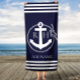Monogramme personnalisé de 2 lettres avec nom marine et blanc ancre plage / serviette de bain.